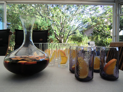 Tre månader kvar tills att vårat körsbärsträd blommar. Just precis idag satt jag och tänkte på det när jag körde bil i ett riktigt skitväder. Snö och slask på motorvägen. Vindrutetorkarna användes flitigt, likaså spolarvätskan. Just precis nu längtar jag efter att sitta i vårat uterum och kanske njuta av en Sangria.